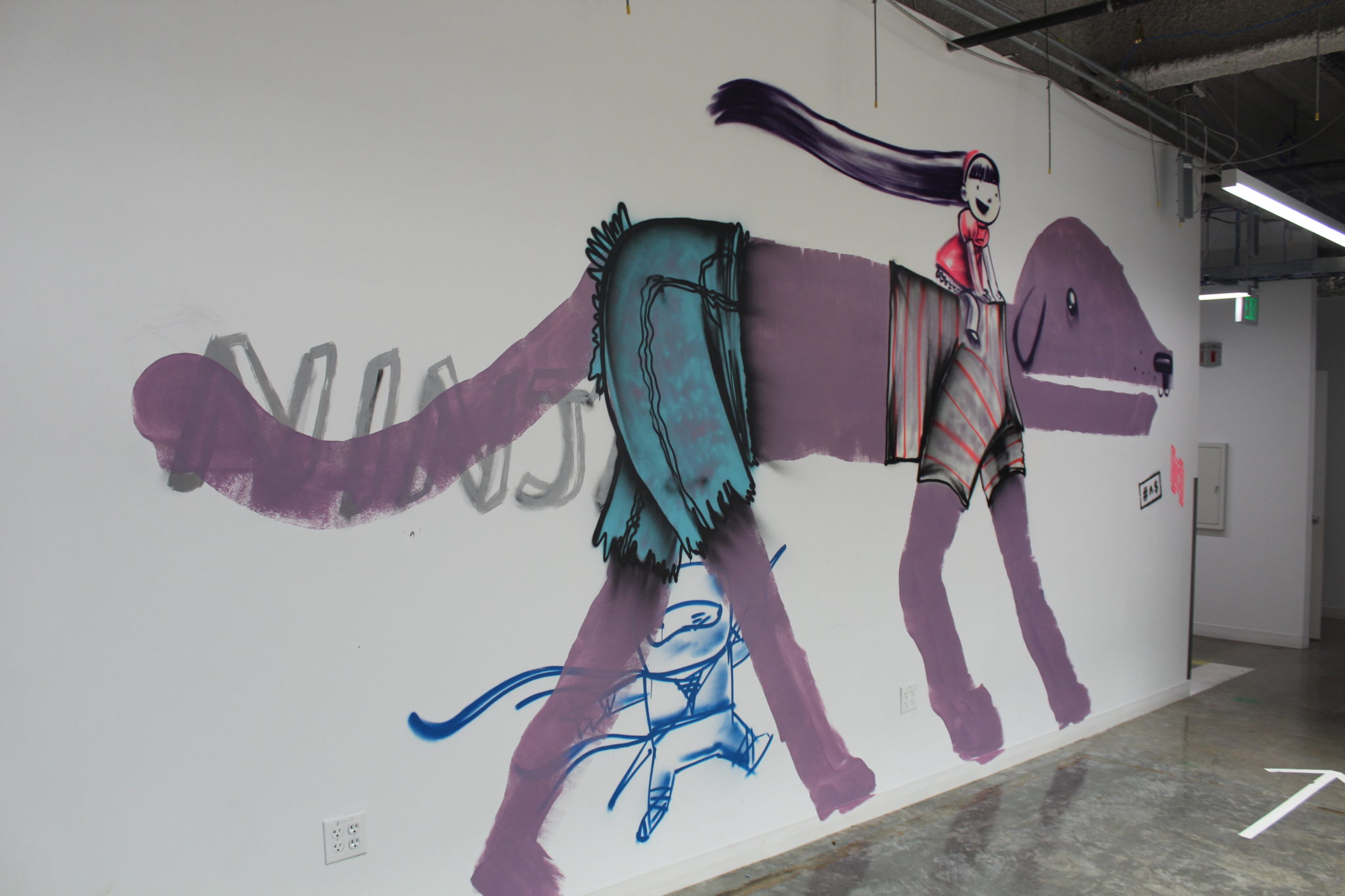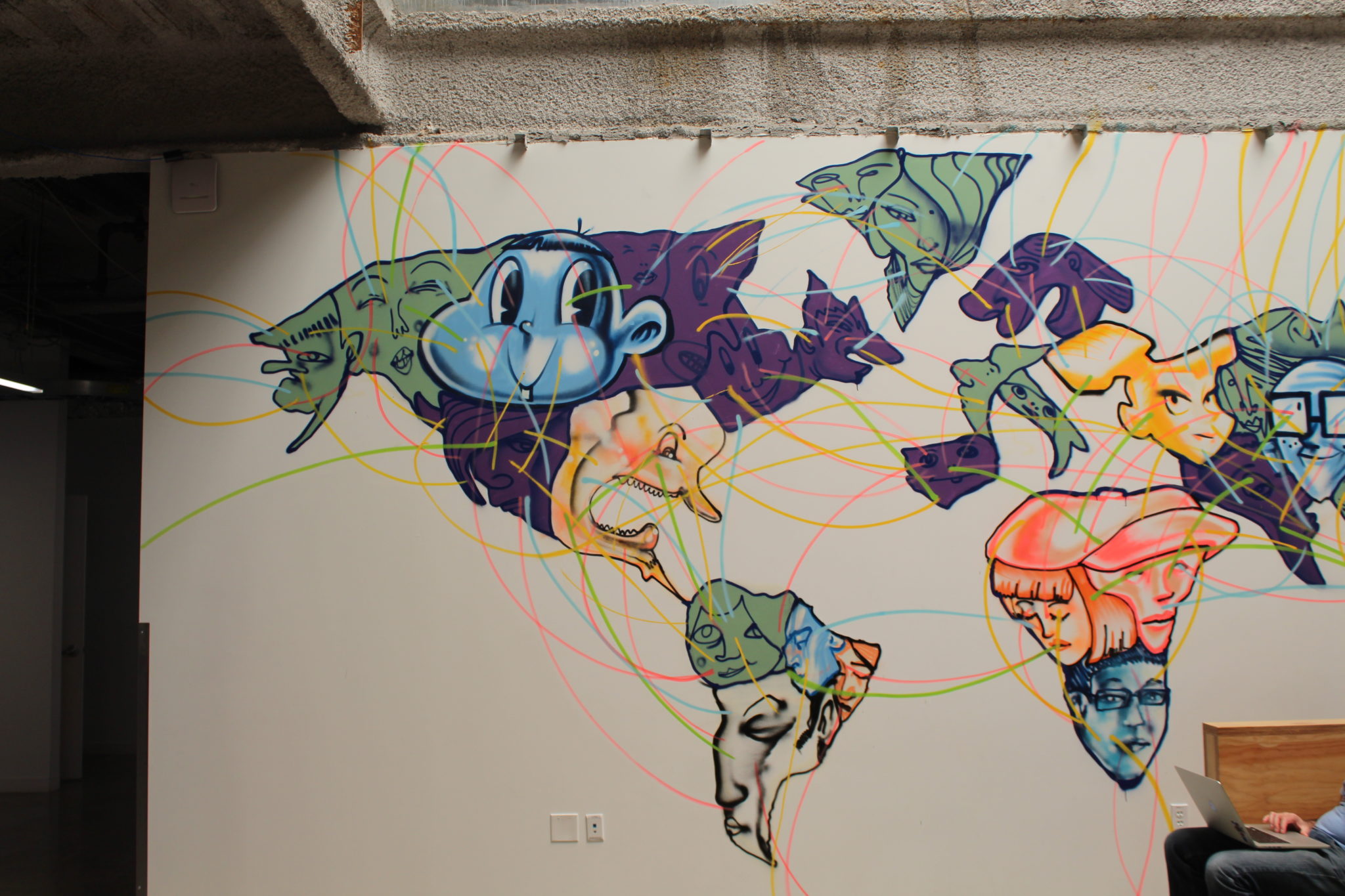 After lunch we stopped by the Facebook clothing store. I picked out a T-shirt souvenir, then we continued on our tour. art on the walls at Facebook Headquarters